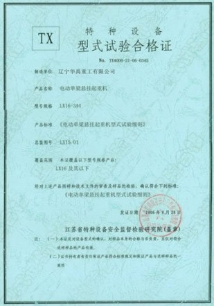 防爆单梁形式试验合格证